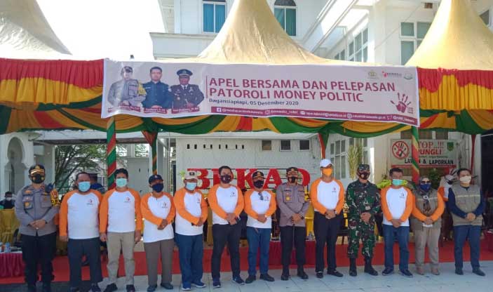 Pemimpin apel terdiri dari Plt Sekda Rohil M Job Kurniawan, Kapolres Rohil AKBP Nurhadi Ismanto, Kajari Rohil Gaos Wicaksono, dan Ketua Bawaslu Rohil Syahyuri.