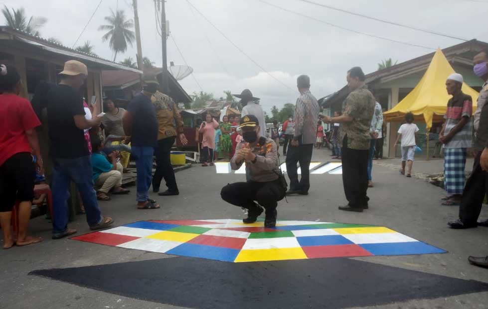 Ide kreatif yang di gagas oleh Kapolres Rohil AKBP NURHADI ISMANTO SH,SIK dalam rangka hari bhayangkara ke 47 tahun 2020 di buat lukisan tiga dimensi sepanjang Jalan Pusara 1 sehingga lebih memper indah dan menarik perhatian.