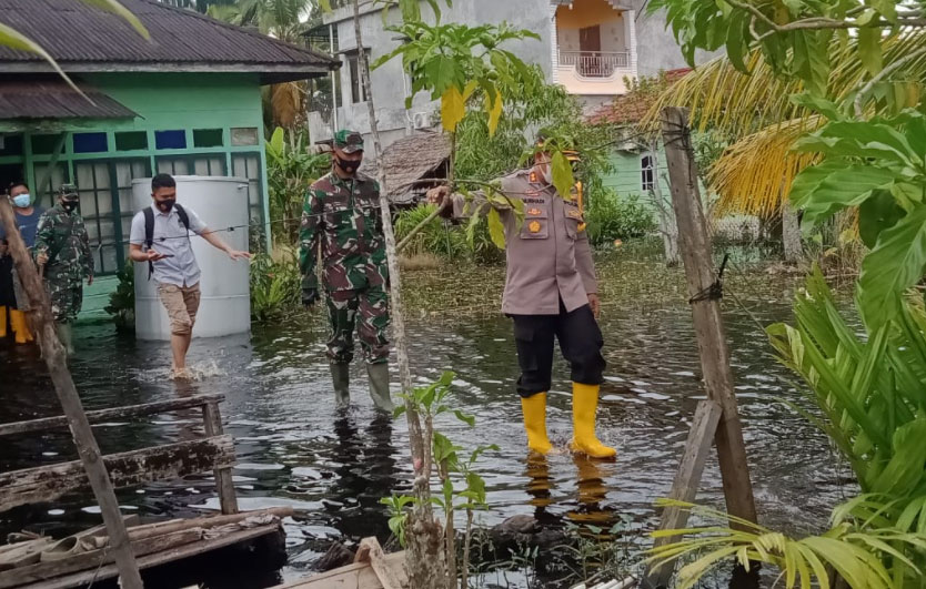 (RIAUHITS.COM) BAGANSIAPIAPI - Kapolres Rohil AKBP Nurhadi Ismanto SH SIK berserta jajaran dan Dandim 0321 Rohil Letkol Arh Agung Rachman Wahyudi beserta jajaran langsung turun melihat masyarakat yang dilanda Banjir di Kelurahan Bagan Timur, Kecamatan Bangko, Rokn Hilir.